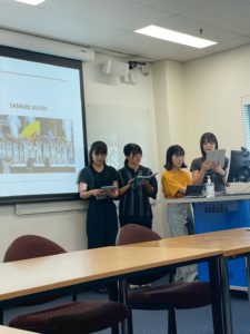 クィーンズランド工科大学で英語でプレゼンテーションする山崎さん(一番左)